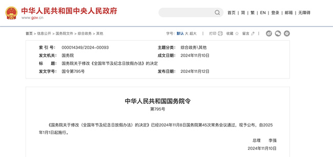 重磅消息來啦!國(guó)務(wù)院決定對(duì)《全國(guó)年節(jié)及紀(jì)念日放假辦法》作出修改,2025年起,法定節(jié)假日增加2天!