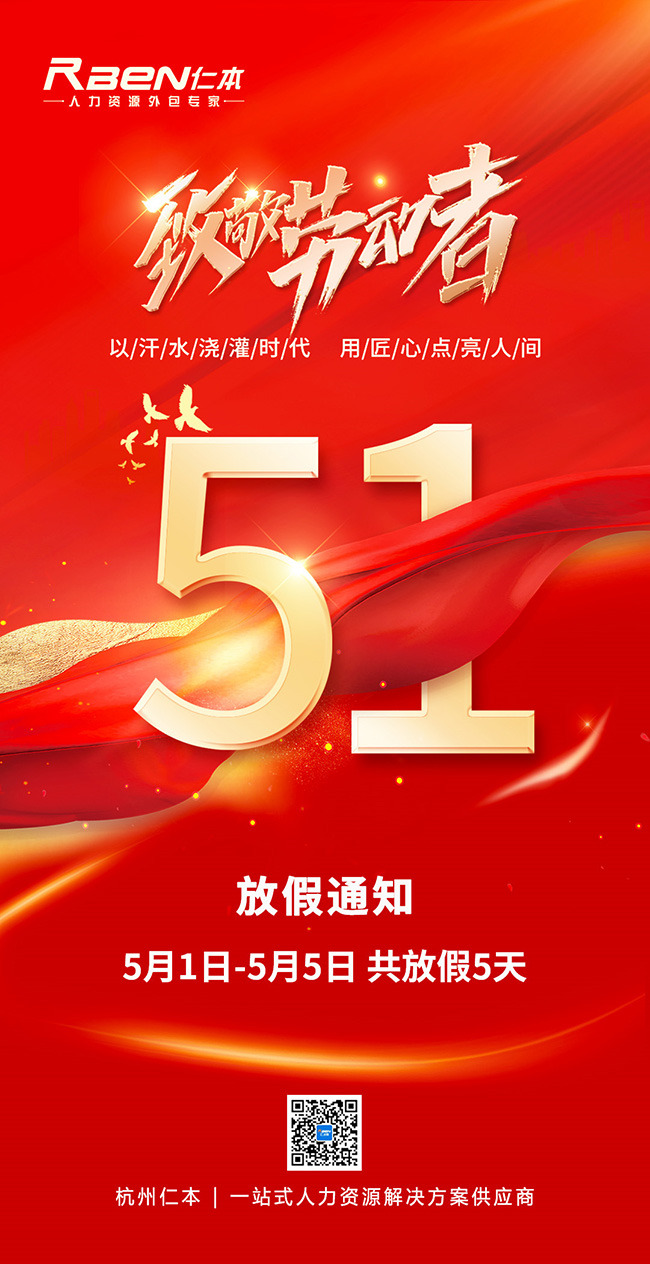 放假時間:5月1日-5月5日放假,5月6日(星期二)正式上班。
