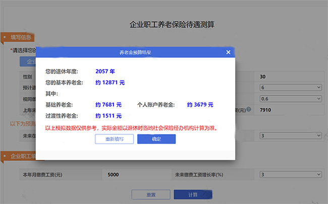 第二步:輸入測算信息,點擊測算。