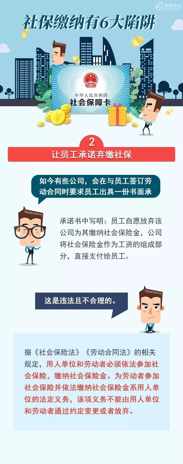 社保繳費基數每年都在調整,每年都在漲!然而對于沒有用到社保的人民群眾繳納社保都是人從眾心理... 社保繳費基數: 社保繳費基數就是你每月需要出資繳納社保的那部分金額,一般是由各省市社會平均工資的60%--300%為繳納基數,比如社會平均工資是3000元,繳納的基數可以是1800元--9000元。 社保繳費基數如何確定: 社保繳費基數一般是本人工資多少,社保繳費基數就是多少; 比如你月收入4500,那么4500就作為你繳納社保的基數。 但如今大部分企業為降低成本,都是以最低基數為企業員工繳納社保。 另有以下特例: 1、假如你的收入高于當地上年度職工平均工資300%的,以當地上年度職工平均工資的300%為繳費基數; 2、假如你的收入低于當地上一年職工平均工資60%的,以當地上一年職工平均工資的60%為繳費基數; PS:意思就是最高不能高過300%,最低不能低于60%; 具體有沒有超過可以根據規則自己測算~~ 社保繳費基數更改時間: 社保繳費基數一般是每年更改一次。 6、注意!社保繳納的6個陷阱 社保繳納影響著勞動者以后的退休養老等諸多待遇,是給自己的退休生活上了一道保險,然而很多公司卻有意無意地損害勞動者的合法權益。以下就盤點6種情況,小心中招: