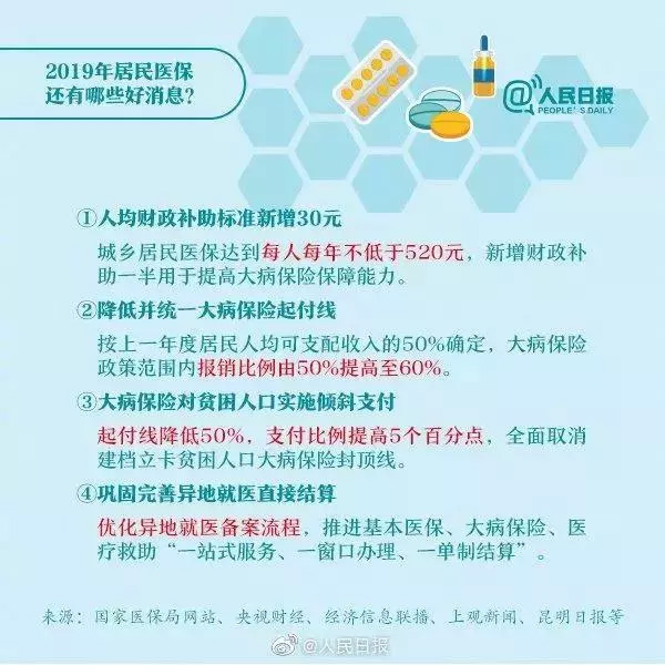 確定了!居民醫保個人賬戶20年底前取消 近日,國家醫療保障局、財政部印發了《關于做好2019年城鄉居民基本醫療保障工作的通知》,文件當中有一條規定: 實行個人(家庭)賬戶的,應于2020年底前取消,向門診統籌平穩過渡;已取消個人(家庭)賬戶的,不得恢復或變相設置。 政策內容公布后,有新變化,實際問題作出了相關闡釋與規定,這些新變化具體有: 一、居民醫保人均財政補助新增30元,每人每年不低于520元 《通知》指明,2019年城鄉居民醫保人均財政補助標準新增30元,達到每人每年不低于520元,新增財政補助一半用于提高大病保險保障能力(在2018年人均籌資標準上增加15元); 個人繳費同步新增30元,達到每人每年250元。省級財政要加大對深度貧困地區傾斜力度,完善省級及以下財政分擔辦法。地方各級財政要按規定足額安排財政補助資金,按規定及時撥付到位。 各級醫療保障部門要有序推進城鄉居民醫療保險費征管職責劃轉前后的工作銜接,確保年度籌資量化指標落實到位。 二、提升保障,高血壓、糖尿病等納入醫保報銷 《通知》著重提出要提高政策范圍內住院費用報銷比例,建立健全城鄉居民醫保門診費用統籌及支付機制,重點保障群眾負擔較重的多發病、慢性病。并且將高血壓、糖尿病等門診用藥納入醫保報銷,具體方案另行制定。 此外還應提高大病保險保障功能。降低并統一大病保險起付線,原則上按上一年度居民人均可支配收入的50%確定,低于該比例的,可不做調整; 政策范圍內報銷比例由50%提高至60%;加大大病保險對貧困人口的支付傾斜力度,貧困人口起付線降低50%,支付比例提高5個百分點,全面取消建檔立卡貧困人口大病保險封頂線,進一步減輕大病患者、困難群眾醫療負擔。 三、全面建立統一的城鄉居民醫保制度 城鎮居民基本醫療保險和新型農村合作醫療制度尚未完全整合統一的地區,要按照黨中央、國務院部署要求,于2019年底前實現兩項制度并軌運行向統一的城鄉居民醫保制度過渡。 制度統一過程中,要鞏固城鄉居民醫保覆蓋面,確保參保率不低于現有水平,參保連續穩定,做到應保盡保;完善新生兒、兒童、學生以及農民工等人群參保登記及繳費辦法,避免重復參保。 已有其他醫療保障制度安排的,不納入城鄉居民醫保覆蓋范圍;妥善處理特殊問題、特殊政策,做好制度統一前后政策銜接,穩定待遇預期,防止泛福利化傾向。 四、完善規范大病保險政策和管理 《通知》強調各省、自治區、直轄市要結合全面建立統一的城鄉居民醫保制度,統一規范大病保險籌資及待遇保障政策,推動統籌地區之間待遇保障標準和支付水平銜接平衡、大體一致。 要優化大病保險經辦管理服務。大病保險原則上委托商業保險機構承辦,各級醫療保障部門要完善對商業保險機構的考核機制,建立健全以保障水平和參保人滿意度為核心的考核評估體系,督促商業保險機構提高服務管理效能,在規范診療行為、控制醫療費用、引導合理就醫等方面發揮應有作用。 五、切實落實醫療保障精準扶貧硬任務 《通知》強調,各地要深入貫徹落實《醫療保障扶貧三年行動實施方案(2018-2020年)》要求,聚焦深度貧困地區和特殊貧困群體,著力解決“兩不愁、三保障”中醫療保障薄弱環節。 確保貧困群眾應保盡保,充分發揮三重保障功能,按照現有支付范圍和既定標準保障到位,建立防范和化解因病致貧、因病返貧的長效機制,切實落實醫療保障精準扶貧硬任務。 六、全面做實地市級統籌 目前,統籌地區基本醫療保險基本上已實現地市級統籌,但近一半是基金調劑模式,還沒有實現基金統收統支。為鞏固提升待遇保障水平,《通知》明確要求各地從以下重點入手:一是實現基金統收統支、二是實現政策制度統一、三是實現一體化經辦管理。 同時,鼓勵有條件的省、自治區、直轄市,按照“分級管理、責任分擔、統籌調劑、預算考核”的總體思路,探索省級統籌方案。
