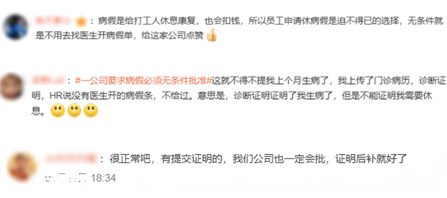 近日,一公司要求病假必須無條件批準(zhǔn),相關(guān)話題引發(fā)網(wǎng)友熱議。